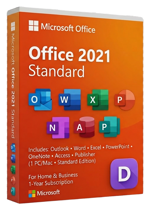 Microsoft Office 2021 Standard daje Ci znane aplikacje Office w modelu jednorazowej licencji, dzięki czemu możesz pracować w Word, Excel, PowerPoint, Outlook, Publisher i OneNote bez opłat za Microsoft 365. To praktyczny wybór dla domowych biur, freelancerów, małych zespołów i organizacji, które chcą aktualnej, wieczystej wersji Office na Windows.
